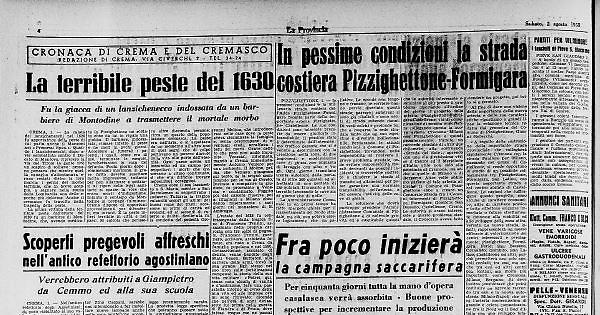 CREMA, 1. — La calata dei lanzichenecchi nel 1628 fu apportatrice della peste di cui parla anche il Manzoni nei «Promessi Sposi». Quando i lanzichenecchi, dopo aver combattuto contro il Ducato di Mantova, ripresero la via del Tirolo la gente tirò un sospiro di sollievo: nessuno pensava che mentre quella canaglia s'allontanava erano restati dietro la loro marcia i germi del morbo terribile, che in breve scoppiò, a segnare nella storia della Lombardia una delle epoche più dolorose.