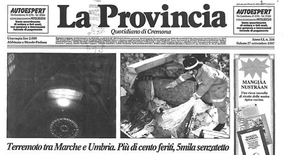 La ferita più profonda nella Basilica superiore di Assisi colpita dal sisma, dove sotto le macerie del tetto sono morte quattro persone: due frati e due tecnici delle Belle Arti. Questi stavano effettuando un sopralluogo per valutare i danni di una prima scossa; un controllo che è risultato fatale perché proprio in quel momento la terra ha tremato ancora. La volta della Basilica è crollata seppellendo le persone in fuga.
