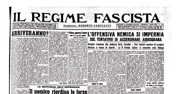 Il Comando Supremo delle Forze Armate comunica: Sull' Appennino toscano e sulla costa dell'Adriatico sia gli Americani che gli Inglesi, in seguito agli insuccessi avuti e alle perdite subite, hanno effettuato ieri soltanto deboli attacchi senza successo.