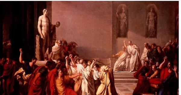 Poche date sono così importanti e ricordate come il 15 marzo del 44 a.C. , il giorno in cui Gaio Giulio Cesare, dittatore di Roma, fu ucciso con 23 pugnalate nella Curia di Pompeo Magno da parte di una coalizione di congiurati guidati da Marco Giunio Bruto e da Gaio Cassio Longino. L’importanza di questa data è dovuta agli effetti da essa scaturiti: il giovane Ottaviano, reclamando i diritti dati dal testamento di Cesare, riuscì a diventare il primo imperatore di Roma e a porre fine all’ormai decadente Repubblica. I motivi che condussero i congiurati a compiere questo efferato delitto risalgono al 60 a.C, anno in cui Marco Licinio Crasso, Pompeo Magno e Cesare stesso strinsero un accordo privato, noto come il primo triumvirato, per mettere sotto scacco la Repubblica romana. Secondo i termini di questo accordo, Cesare sarebbe diventato proconsole in Gallia e avrebbe ottenuto tutti i vantaggi derivanti da quella posizione. Durante il suo soggiorno in Gallia Cesare, usando come casus belli la crescente ostilità dei Galli, riuscì in otto anni (58-50) a conquistarla tutta ottenendo così enormi ricchezze e la fedeltà delle sue truppe. Alla morte di Crasso, avvenuta nel 53 a.C. a Carre, il rapporto tra Cesare e Pompeo si inasprì al punto che Pompeo, intimorito dal crescente successo di Cesare e dalla sua smodata ambizione, si alleò con il Senato per togliere di mezzo l’ostico rivale. Cesare, capita la posizione di Pompeo, attraversò il Rubicone nel 49 a.C. dando inizio a una guerra civile durata quattro anni. Al termine della guerra Cesare, divenuto ormai il padrone di Roma, si fece nominare nel 14 febbraio del 44 a.C. dittatore a vita accendendo così le paure dei senatori che temevano una possibile monarchia e una diminuzione del loro potere, tra questi c’era anche Marco Giunio Bruto, suo figlio adottivo. La figura di Bruto è tra le enigmatiche e contestate della storia poiché ci sono diversi motivi per la quale lui avrebbe dovuto partecipare alla congiura: avrebbe potuto partecipare per profitto oppure per onorare il ricordo degli avi. La famiglia di Bruto vantava infatti una discendenza diretta da Lucio Giunio Bruto che aveva cacciato l’ultimo re di Roma Tarquinio il Superbo e aveva instaurato la Repubblica. In ogni caso, approfittando della festività annuale dedicata ad Anna Perenna, i congiurati aspettarono che Cesare si recasse nella Curia per l’assemblea quotidiana e, dopo aver distratto quell’energumeno di Marco Antonio, lo pugnalarono. Cesare inizialmente oppose resistenza, ma quando vide Bruto sussurrò la celebre frase: "Tu quoque , Brute, filii mi". coprendosi il volto e accettando la morte.
