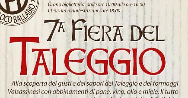 Ballabio, ospita l'annuale appuntamento dedicato alla gustosa celebrazione delle proprie tradizioni. La VIIa Fiera del Taleggio, promossa dalla Proloco con il patrocinio dell'UNPLI (Unione Nazionale ProLoco Italiane) e sotto il beneplacito del CTT (Consorzio di Tutela del Taleggio), prenderà vita lungo le vie dell'antico borgo, offrendo degustazioni tradizionali a base del noto formaggio locale e non solo! Dal 2006, all'iniziare della primavera, il paese apre le sue porte a tutti coloro che, attraverso un omaggio al tipico formaggio taleggio, vogliono rivivere le antiche tradizioni del territorio. Passando attraverso degustazioni e assaggi di prelibati piatti tradizionali, sarà possibile, seguendo un percorso in 14 tappe che si snoda tra gli antichi Ballabio Superiore e Ballabio Inferiore, scoprire le tante offerte di questa meravigliosa località all'imbocco della Valsassina. Per i bambini sono stati predisposte due attività didattiche: la Filiera del Formaggio e la Filiera dell'Olio, due percorsi per scoprire gli antichi sistemi di produzione di questi due importanti prodotti alimentari. La Fiera parte dalle ore 10.00 fino alle ore 18.00 (chiusura casse ore 16.00). Attraverso l'acquisto del "TALEGGIOpass" sarà possibile provare tutte le varie degustazioni proposte nelle 14 tappe. E' acquistabile online a 7,00 Euro o direttamente in loco a 10,00 Euro.
