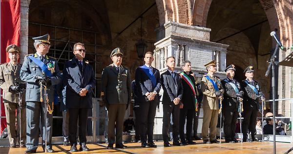CREMONA - Si è tenuta questa mattina, in piazza del Comune, la cerimonia commemorativa dell’Unità nazionale e delle Forze Armate. Il programma era suddiviso in due cerimonie. Quella dell’Alzabandiera è iniziata alle 10,20 con l’ammassamento dei reparti in zona d’attesa ed è terminerà alle 11,15 con il deflusso, dopo alcuni momenti particolarmente rilevanti tra cui il discorso del prefetto Corrado Conforto Galli, alla sua prima cerimonia a Cremona. La cerimonia di deposizione della corona al Bollettino della Vittoria è iniziata subito dopo, con lo schieramento del Picchetto d’Onore, ed è terminata dopo la deposizione di due corone d’alloro.